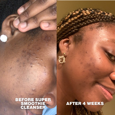 The Super Smoothie Cleanser, your essential for achieving radiant, smooth skin. This best seller uses fruit powders to target breakouts, brighten your complexion, and provide gentle exfoliation, helping you bid farewell to dark spots.